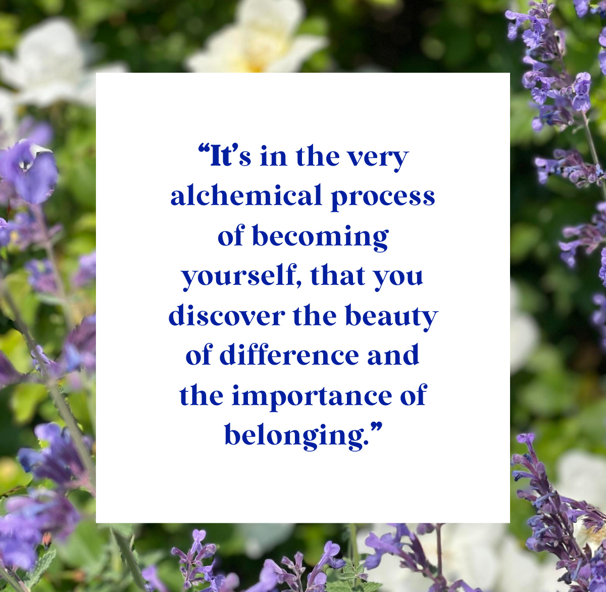 But what I think she’s also saying is that it’s in the very alchemical process of becoming yourself, that you discover the true prismatic beauty of difference and the importance of belonging.